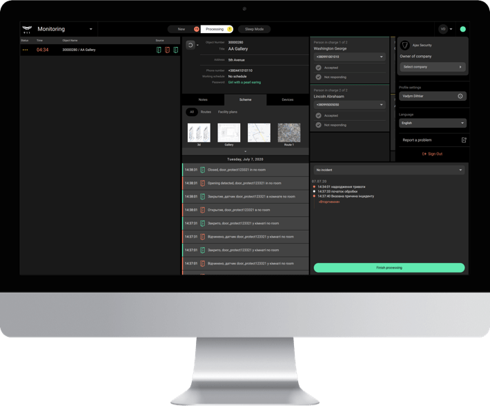 Find out about the incidents on site with push notifications. Check the address, the cause of an alarm, and the location of a triggered detector or a panic button in the event summary.